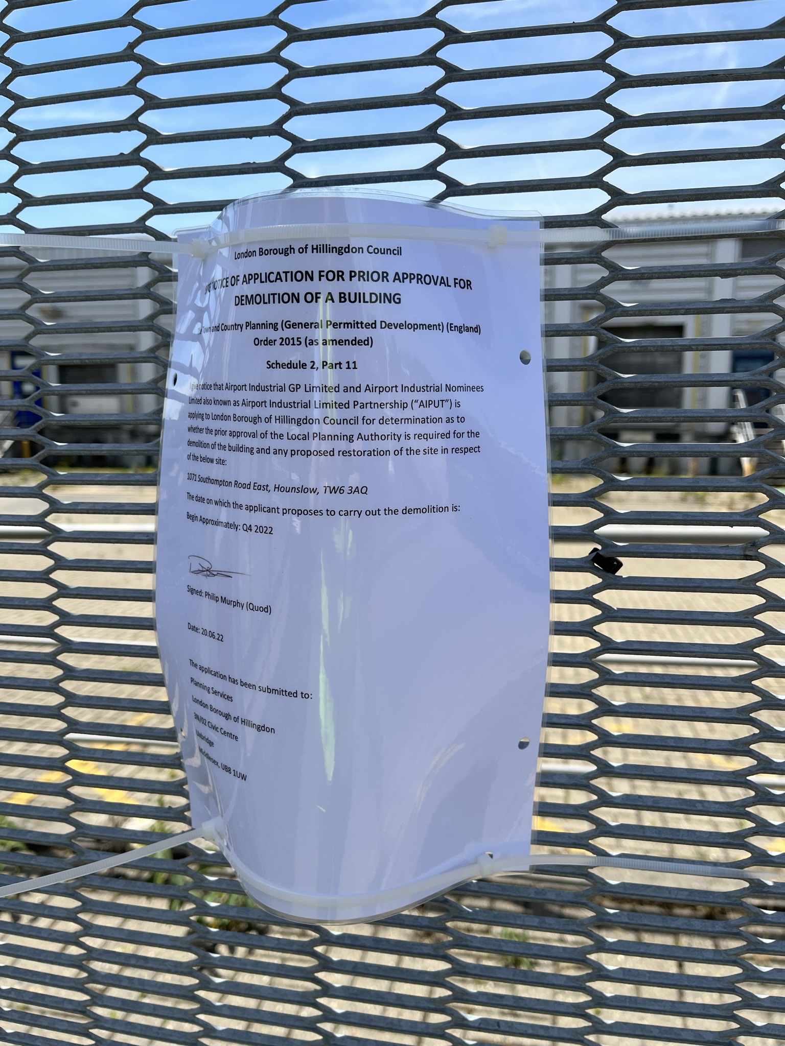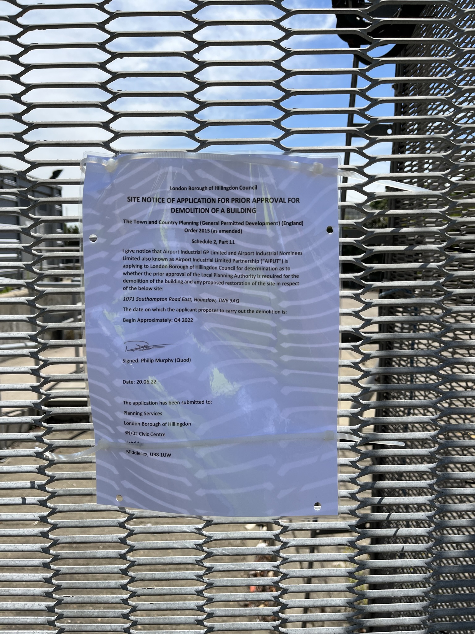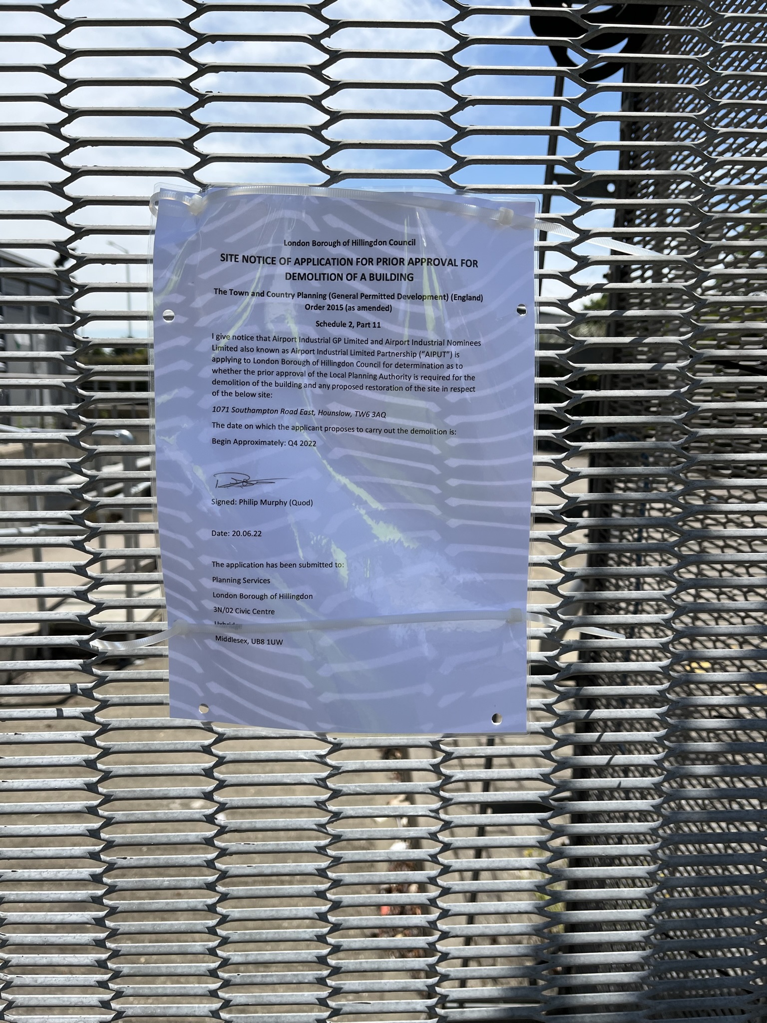 | SUPPORTING INFORMATION | 24-06-22 | Demolition Site Notice Final 20.06.22 Displayed site notice statement | ||